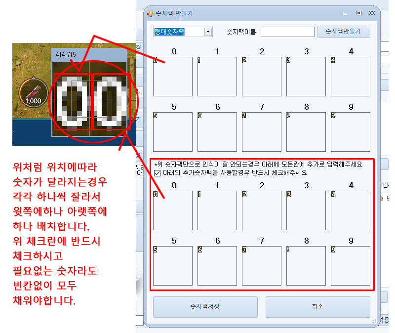 위 이미지처럼 위치에 따라 글자의 뭉개짐같은것이 약간씩 달라지는경우 각각 잘라서 위쪽에 하나 아래쪽에 하나 배치시키는 방법으로 인식률을 높힐수 있습니다.