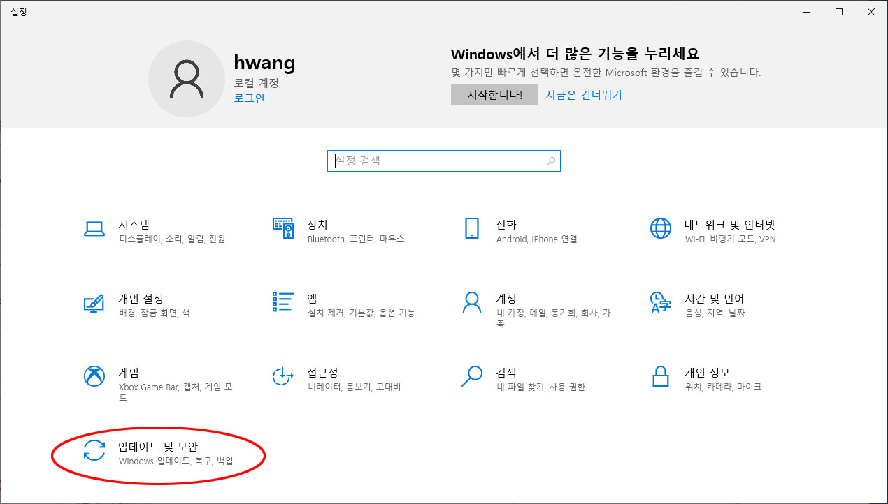 키보드의 윈도우키+i 키를 누르시고 아래 이미지처럼 따라하시면 됩니다.